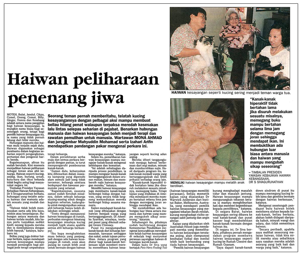 Haiwan peliharaan penenang jiwa